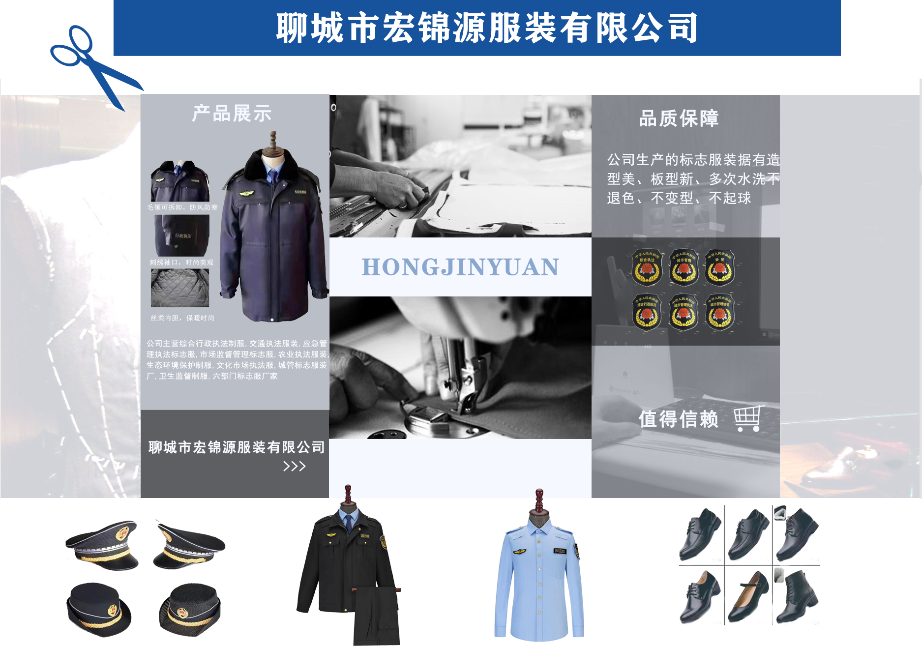 聊城市宏錦源服裝有限公司位于江北水城—山東聊城,地理位置優(yōu)越,交通便利。公司主營(yíng)綜合行政執(zhí)法制服,交通執(zhí)法服裝,應(yīng)急管理執(zhí)法標(biāo)志服,市場(chǎng)監(jiān)督管理標(biāo)志服,農(nóng)業(yè)執(zhí)法服裝,生態(tài)環(huán)境保護(hù)制服,文化市場(chǎng)執(zhí)法服,城管標(biāo)志服裝廠,衛(wèi)生監(jiān)督制服,六部門(mén)標(biāo)志服廠家等,值得信賴! 公司生產(chǎn)的標(biāo)志服裝據(jù)有造型美、板型新、多次水洗不退色、不變型、不起泡?! 罢J(rèn)真辦事,踏實(shí)做人”是宏錦源的企業(yè)精神,我們的宗旨是:“用服務(wù)與真誠(chéng)來(lái)?yè)Q取你的信任與支持,互惠互利,共創(chuàng)雙贏!”我公司愿與國(guó)內(nèi)外各界同仁志士竭誠(chéng)合作,共創(chuàng)未來(lái)企業(yè)目標(biāo):在已選定的服飾領(lǐng)域中,成為行業(yè)的卓越者?! 〗?jīng)營(yíng)理念:追求產(chǎn)品卓越,為用戶提供完美、高效的服務(wù)。...
